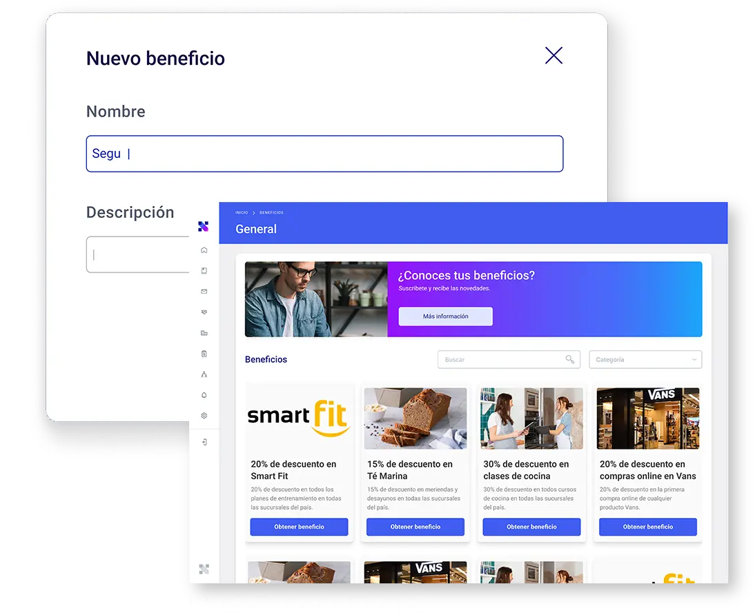 Carga todo tipo de beneficios que posee la compañía en el portal.